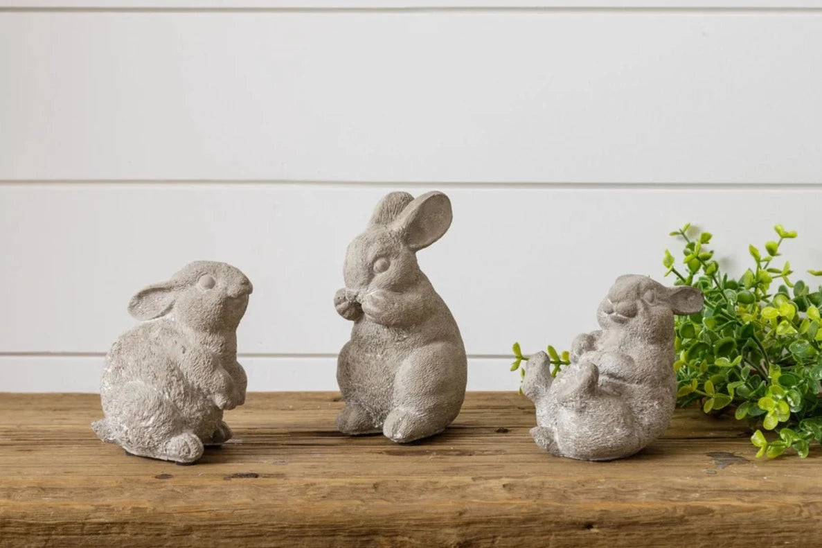 These adorable cement bunnies make a great accent to your spring decor or in your garden!
